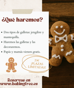 Ven a pasar una tarde divertida de padres e hijos preparando galletas de Navidad. Los papás y mamás vienen GRATIS. Se paga la plaza del niño/a y el papá ó mamá participará con él / ella en el taller de manera totalmente gratuita.